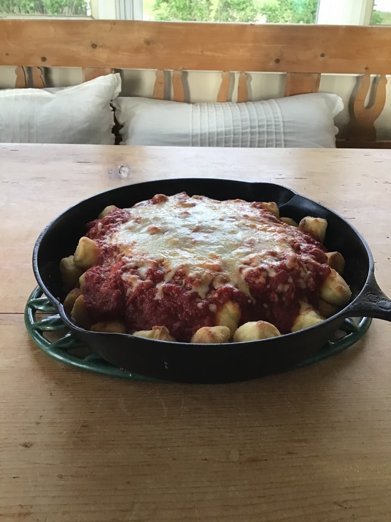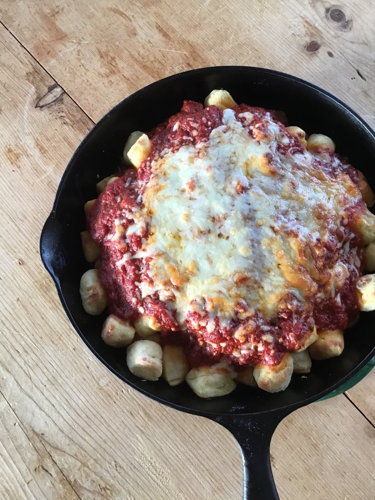 I made a huge batch of homemade gnocchi the other day, and as I was brainstorming simple ways for serving it, I thought that I’d give baking it a try – stick some freshly sautéed, golden brown gnocchi in the oven under a nice coating of Marinara sauce and a sprinkling of Mozzarella cheese?!