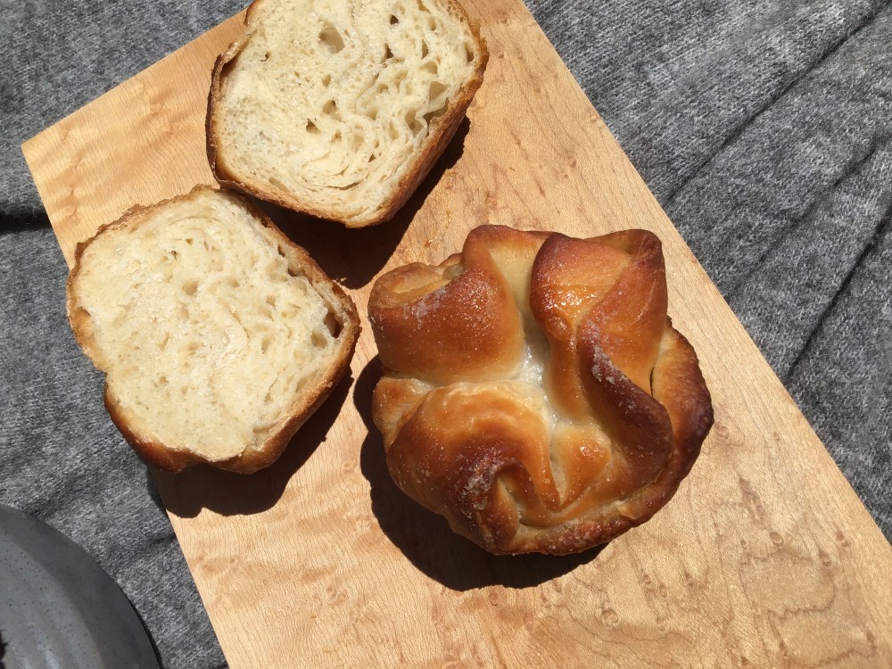 Because I am always in need of a new challenge, I used my wild yeast leaven in this latest variation of this recipe. I’ve also been playing with ways to make the dough lamination process easier, and working on the outward appearance of my kouign-amann. In this rendition, I’ve used a pasta machine to roll out the layers. I’m not sure if it has done much for the appearance, but it has helped with obtaining better layers.