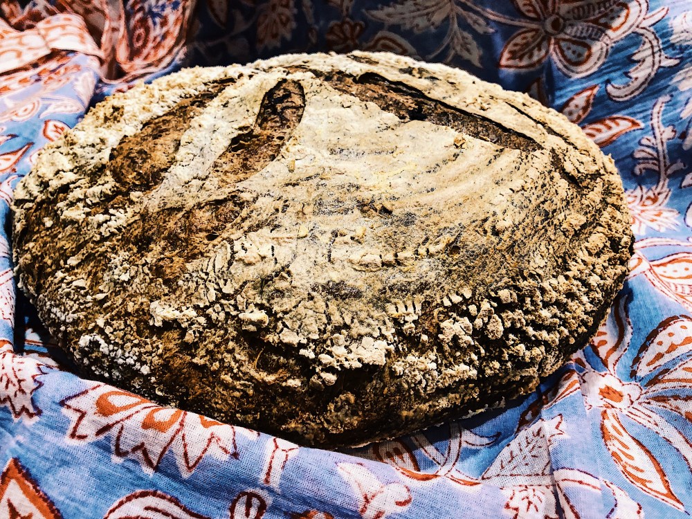 - Slide your dough out of the proofing basket, score the top of your boule, and slide it into the oven.
